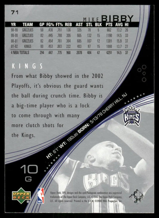 2002-03 Upper Deck Mike Bibby #71 Basketball