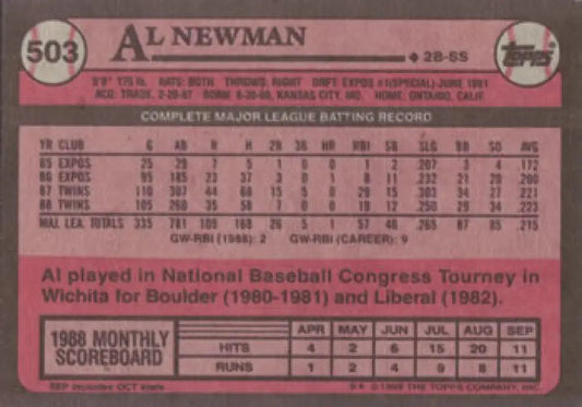 1989 Topps #503 Al Newman NM-MT Minnesota Twins Baseball Card