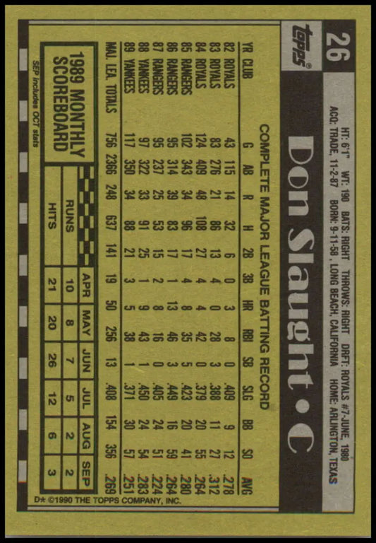1990 Topps #26 Don Slaught NM-MT New York Yankees Baseball Card