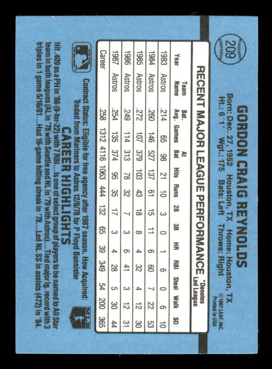 1988 Donruss #209 Craig Reynolds EX Houston Astros Baseball Card