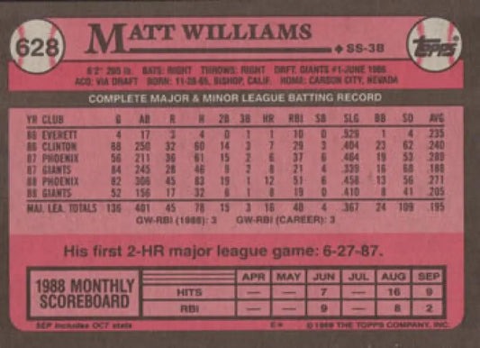 1989 Topps #628 Matt Williams NM-MT San Francisco Giants Baseball Card