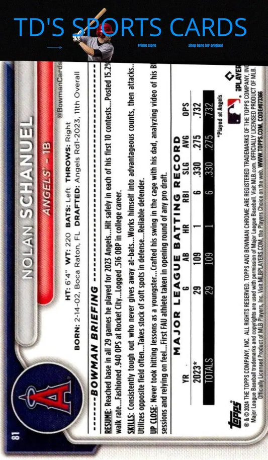 2024 Bowman #81 Nolan Schanuel Chrome Mojo Refractors