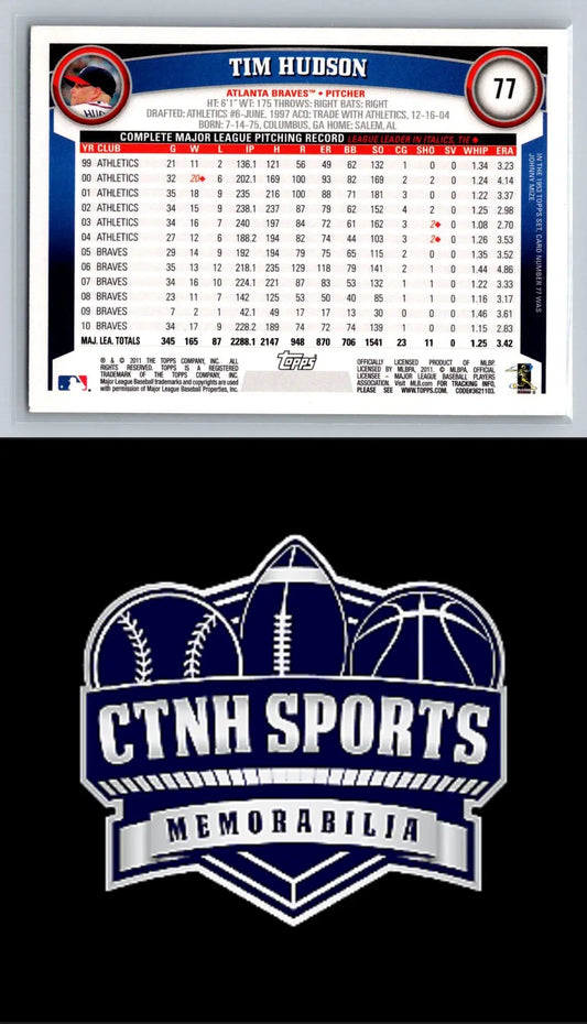 2011 Topps #77 Tim Hudson Diamond Anniversary Atlanta Braves