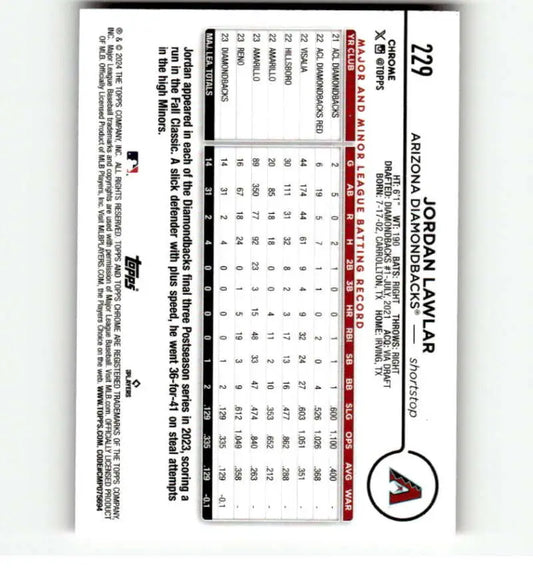 2024 Topps Chrome Refractor Pink #229 Jordan Lawlar NM-MT RC Rookie Arizona Diamondbacks Baseball Card