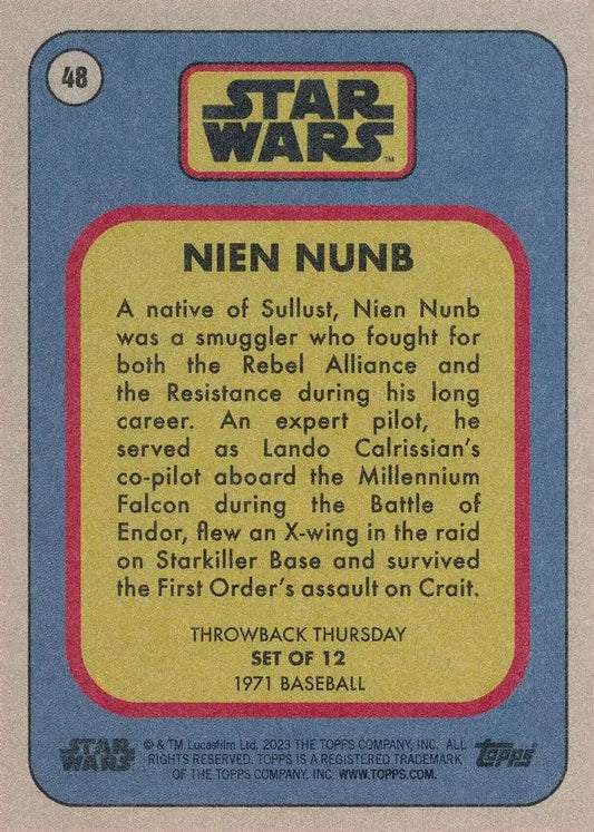 Star Wars Throwback Thursday 2023 Card #48 Nien Nunb 1971 Baseball