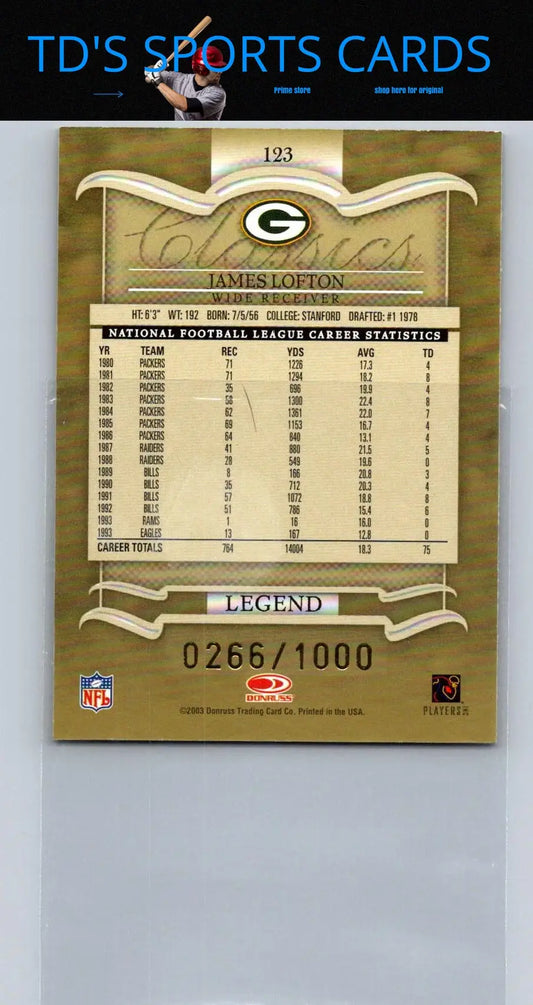 2003 Donruss Classics #123 James Lofton #/1000