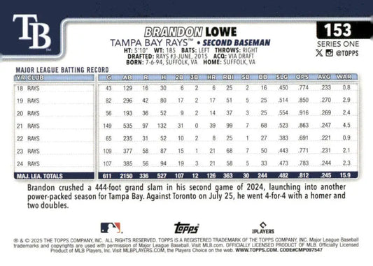 2025 Topps #153 Brandon Lowe NM-MT Tampa Bay Rays Baseball Card