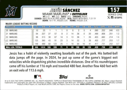 2025 Topps #157 Jesus Sanchez NM-MT Miami Marlins Baseball Card