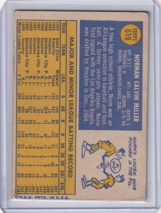 1970 Topps Baseball #619 Norm Miller - Houston Astros