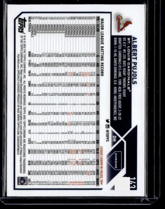 2023 Topps Chrome X-Fractor #143 Albert Pujols NM-MT St. Louis Cardinals Baseball Card
