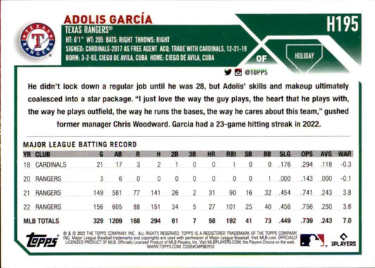 2023 Topps Holiday #H195 Adolis Garcia NM-MT Texas Rangers Baseball Card
