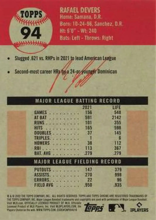 2022 Topps Chrome Platinum Anniversary #94 Rafael Devers NM-MT Boston Red Sox Baseball Card