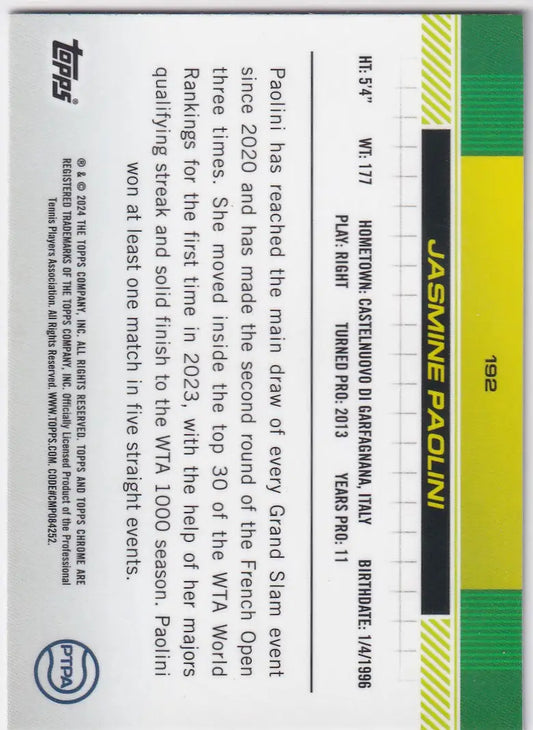 2024 Topps Chrome Prizm Refractor #192 Jasmine Paolini