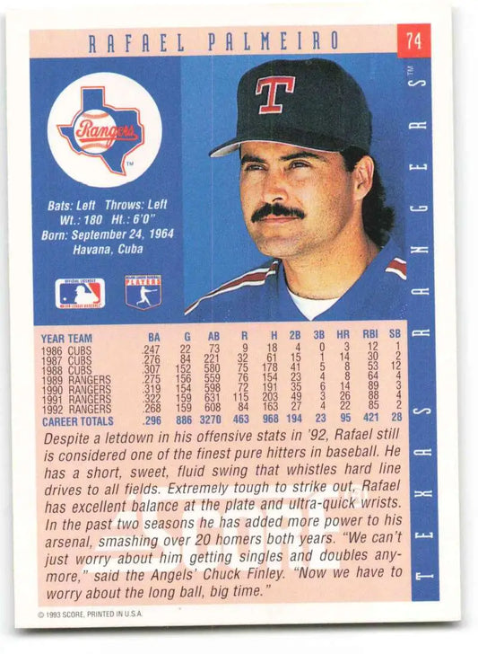1993 Score #74 Rafael Palmeiro NM-MT Texas Rangers Baseball Card