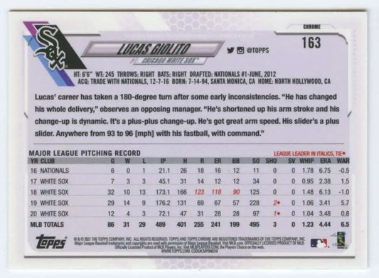 2021 Topps Chrome #163 Lucas Giolito NM-MT Chicago White Sox Baseball Card