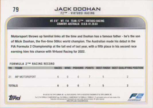 2022 Topps Formula 1 #79 Jack Doohan NM-MT Racing Card