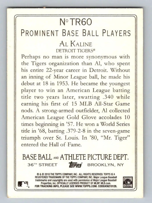 2010 Topps #TR60 Al Kaline Turkey Red Detroit Tigers