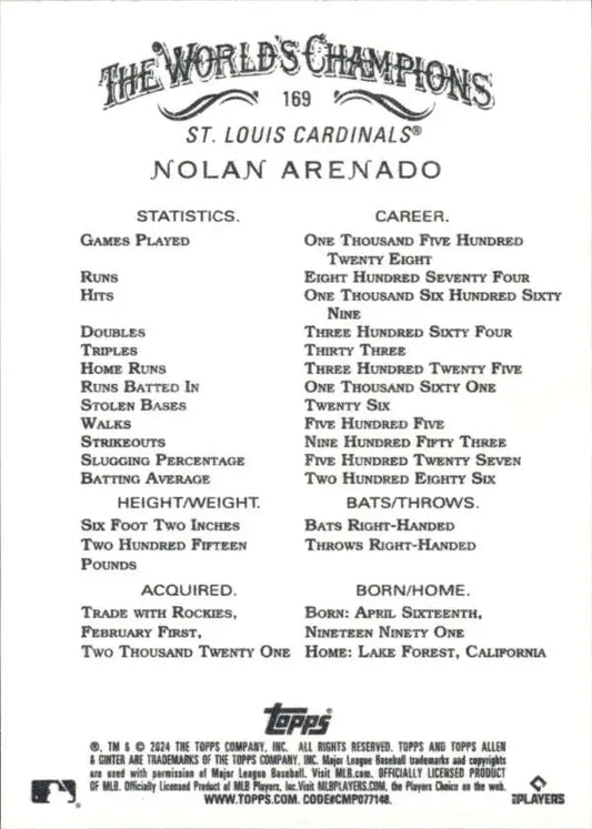 2024 Allen & Ginter #169 Nolan Arenado NM-MT St Louis Cardinals Baseball Card