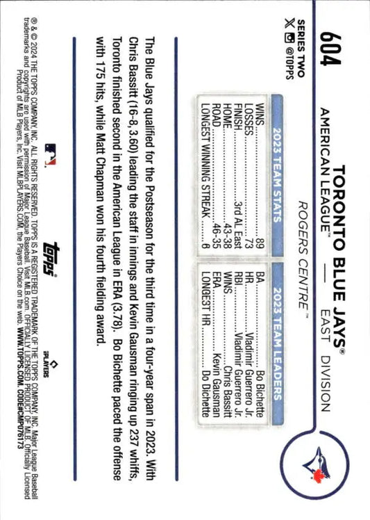2024 Topps #604 Team Card NM-MT Toronto Blue Jays Baseball Card
