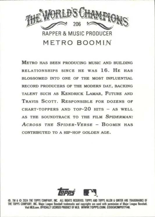 2024 Allen & Ginter #206 Metro Boomin NM-MT Non-Baseball Baseball Card