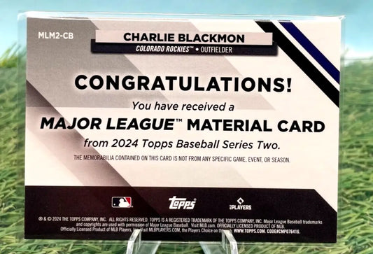2024 Topps Series 2 Charlie Blackmon Major League Material Relic #MLM2-CB