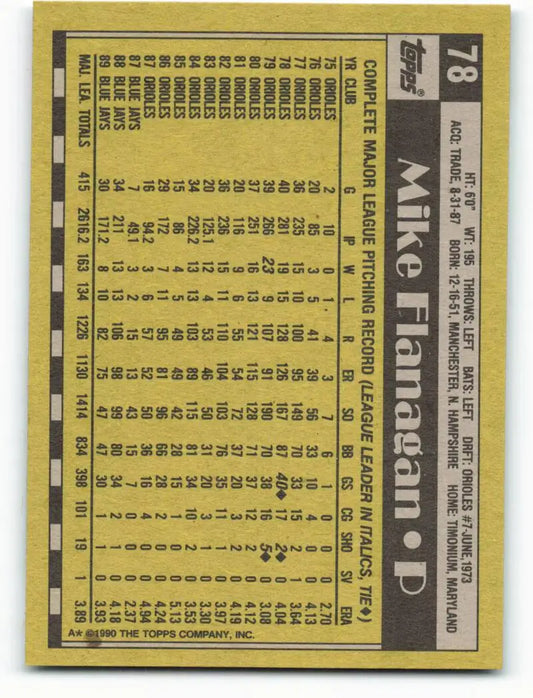 1990 Topps #78 Mike Flanagan NM-MT Toronto Blue Jays Baseball Card