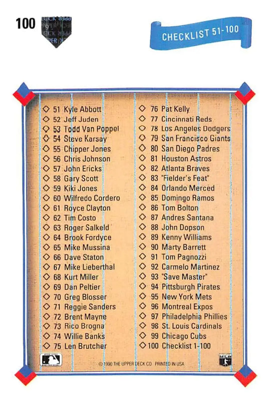 1991 Upper Deck #100 Checklist 1-100 NM-MT Checklist Baseball Card