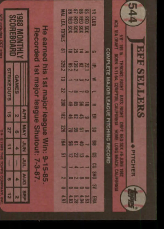 1989 Topps #544 Jeff Sellers NM-MT Boston Red Sox Baseball Card