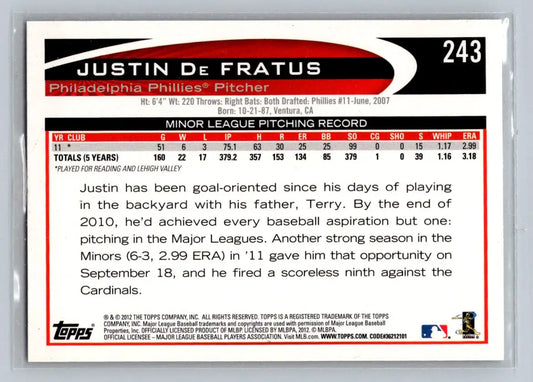 2012 Topps #243a Justin De Fratus Philadelphia Phillies Rookie