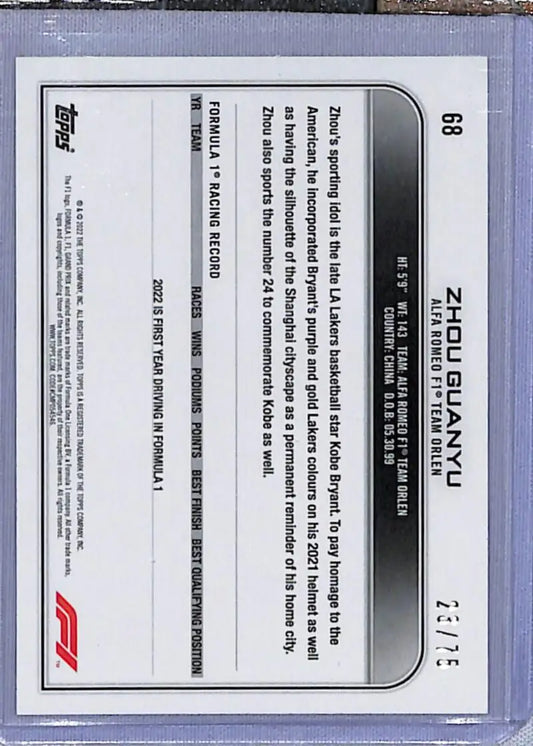2022 Topps Forumla 1 #68 Green Zhou Guanyu NM-MT 23/75 Racing Card