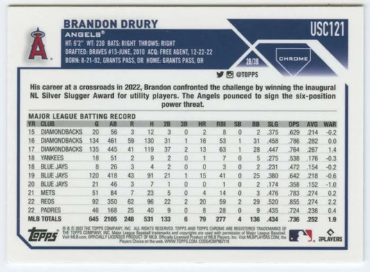 2023 Topps Chrome Update #USC121 Brandon Drury NM-MT Los Angeles Angels Baseball Card