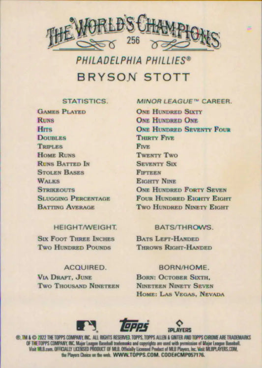 2022 Topps Allen and Ginter Chrome #256 Bryson Stott NM-MT RC Rookie Philadelphia Phillies Baseball Card