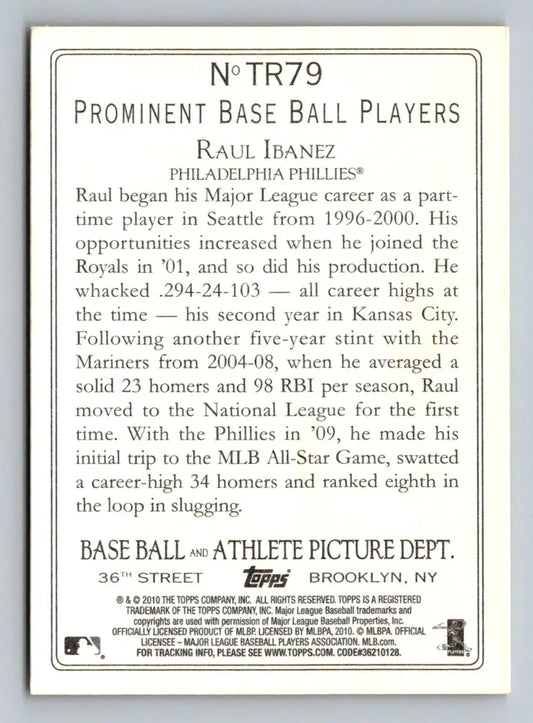2010 Topps #TR79 Raul Ibanez Turkey Red Philadelphia Phillies