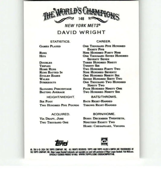 2024 Allen & Ginter #148 David Wright NM-MT New York Mets Baseball Card