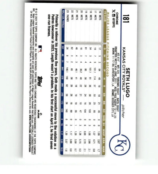 2024 Topps Chrome X-Fractor #181 Seth Lugo NM-MT Kansas City Royals Baseball Card