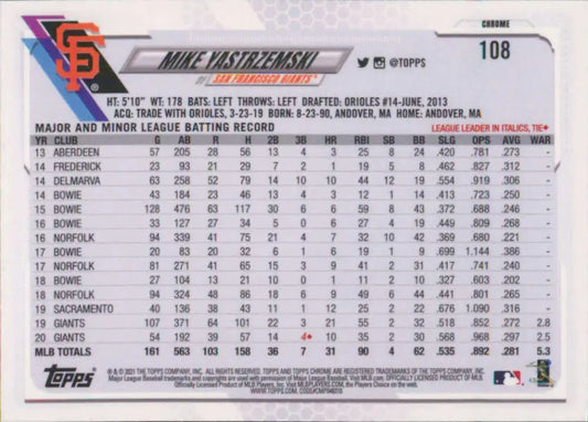 2021 Topps Chrome #108 Mike Yastrzemski NM-MT San Francisco Giants Baseball Card