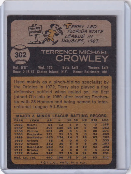1973 Topps Baseball #302 Terry Crowley - Baltimore Orioles