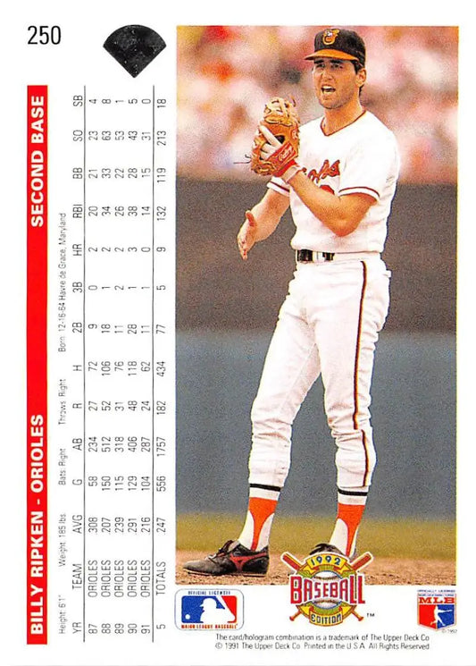 1992 Upper Deck #250 Billy Ripken NM-MT Baltimore Orioles Baseball Card