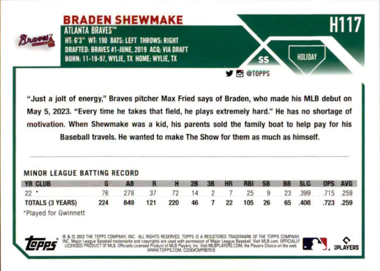 2023 Topps Holiday #H117 Braden Shewmake NM-MT RC Rookie Atlanta Braves Baseball Card