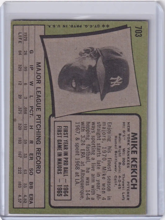 1971 Topps Baseball #703 Mike Kekich - New York Yankees