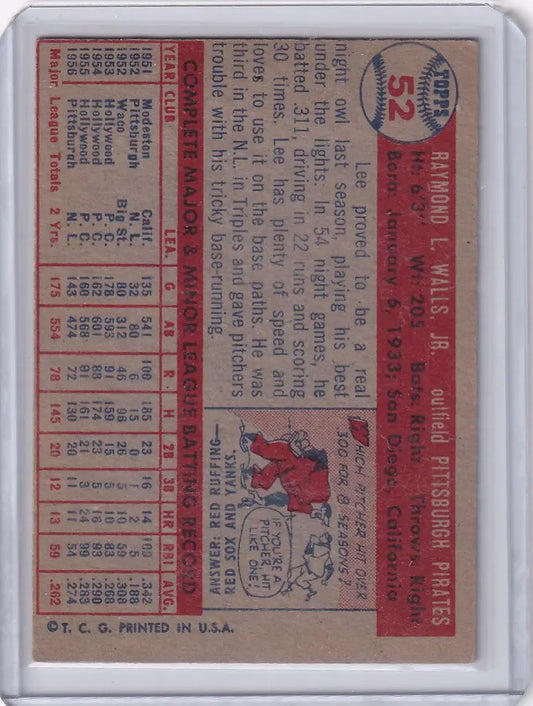 1957 Topps Baseball #52 Lee Walls - Pittsburgh Pirates