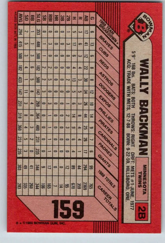 1989 Bowman #159 Wally Backman NM-MT Minnesota Twins Baseball Card