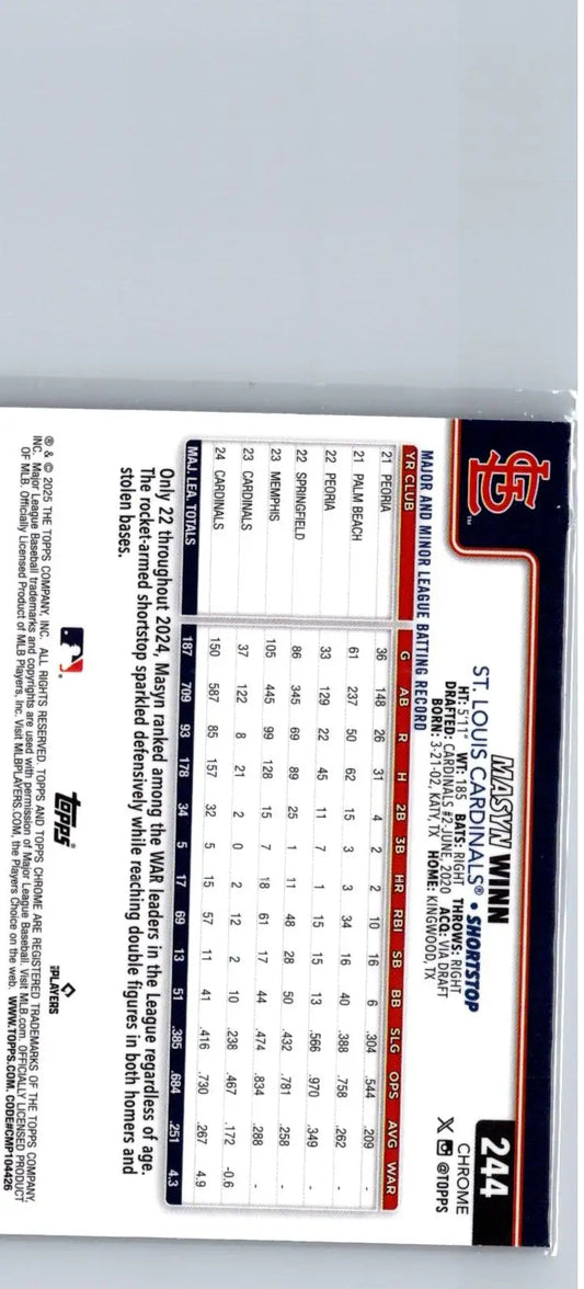 2025 Topps Chrome #244 Masyn Winn Raywave Refractors
