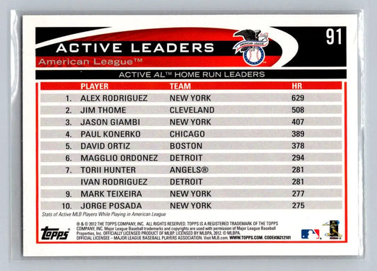 2012 Topps #91 Active AL Home Run Leaders (Rodriguez /Thome /Giambi)