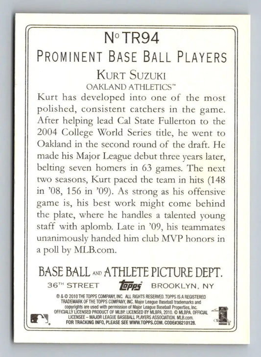 2010 Topps #TR94 Kurt Suzuki Turkey Red Oakland Athletics