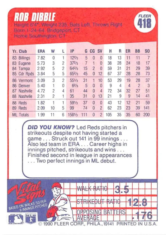1990 Fleer #418 Rob Dibble NM-MT Cincinnati Reds Baseball Card