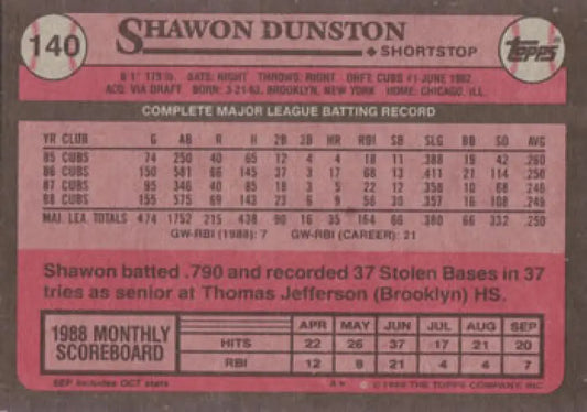 1989 Topps #140 Shawon Dunston NM-MT Chicago Cubs Baseball Card