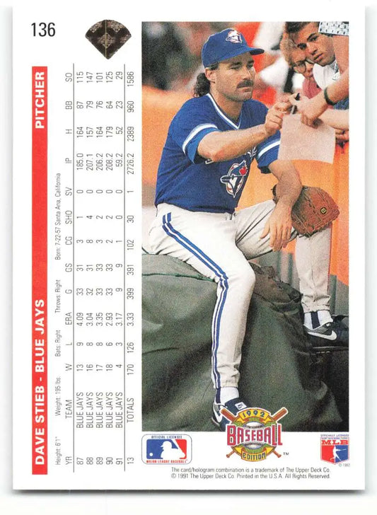 1992 Upper Deck #136 Dave Stieb NM-MT Toronto Blue Jays Baseball Card