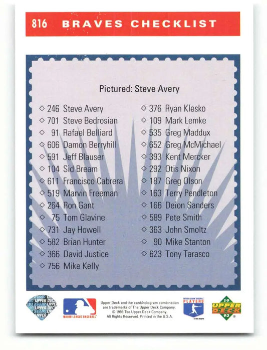 1993 Upper Deck #816 Steve Avery TC VG Atlanta Braves Baseball Card