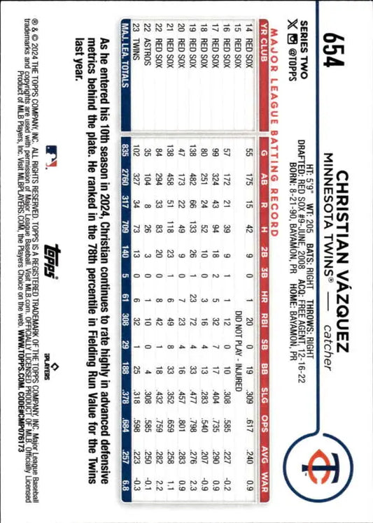 2024 Topps #654 Christian Vazquez NM-MT Minnesota Twins Baseball Card
